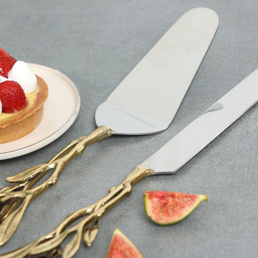 Brass Gold Twig Handle Cake Server Set of 2